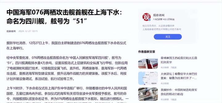 076型四川舰2024年下水,满载超4万吨,电磁弹射,能起降无人机和隐身战机,双舰岛设计。这说明中国没忽略两栖舰,反而在航母发展的同时补上这块短板。